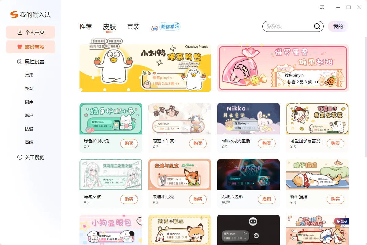 如何购买搜狗输入法的收费皮肤?