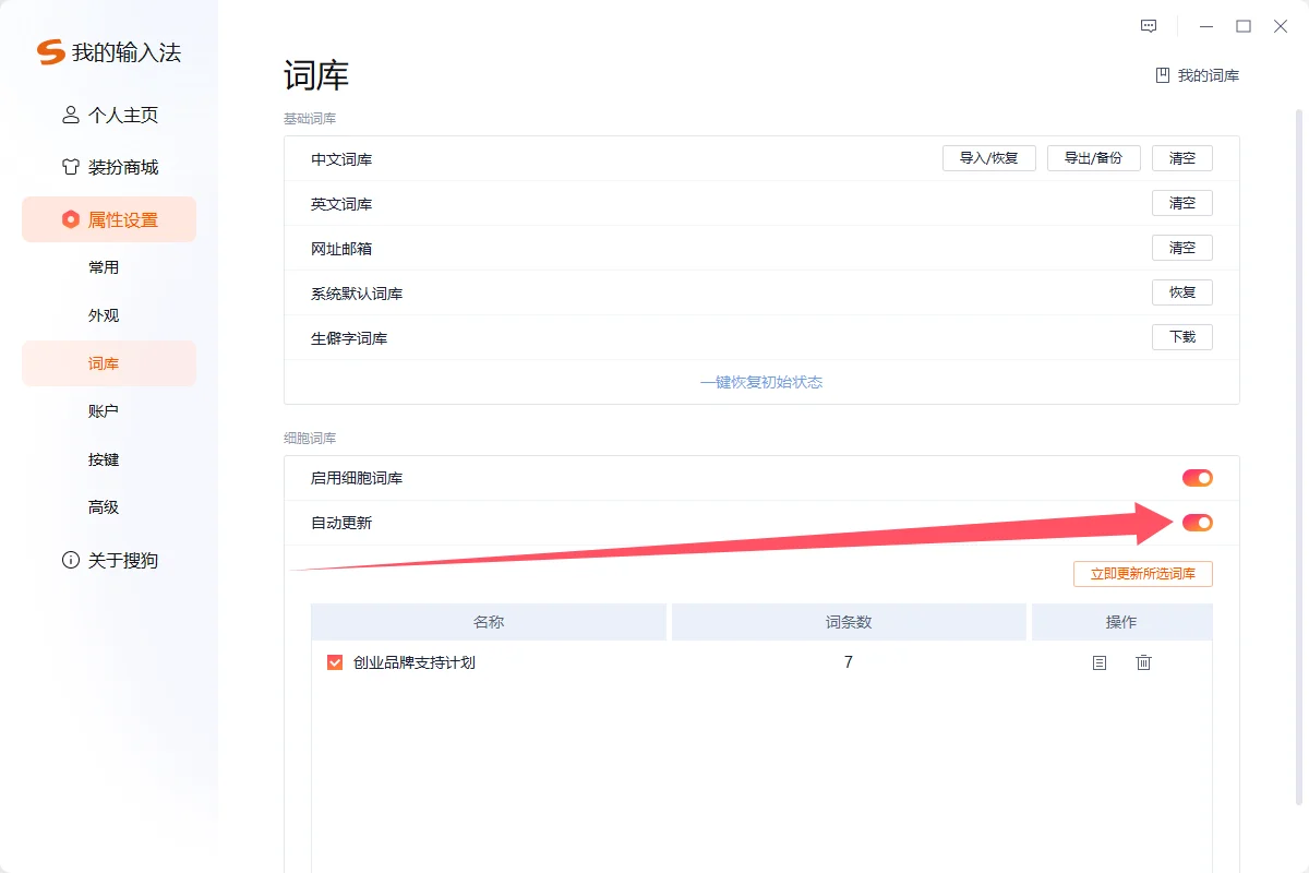 搜狗输入法如何让词库自动更新?