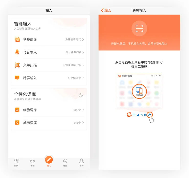 - 同步用户字典:搜狗输入法允许用户将个人的词库和习惯同步到云端,这样无论在哪个设备上安装搜狗输入法,只要登录相同的账号,就可以实现个性化词库的无缝切换和使用。
